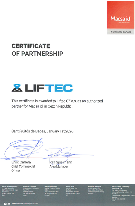 Společnost LIFTEC CZ se od 1. 1. 2026 stala exkluzivním distributorem značky Macsa pro Českou republiku. Převzali jsme tak distribuci i podporu pro instalovanou základnu laserů Macsa v tomto regionu. V letech 2018 – 2025 tuto roli zastávala firma Mark Industries, jejíž distribuční smlouva byla ukončena. Nyní bylo zastoupení světoznámé značky Macsa pro Českou republiku svěřeno společnosti LIFTEC CZ. Za více než 30 let na trhu jsme prokázali stabilitu, důraz na kvalitní servis a získali si tak důvěru svých zákazníků.