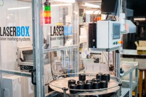 Projekt na značení silentbloků Pro významnou gumárenskou společnost vyrábějící díly pro automobilový průmysl, jsme na míru vyrobili komplexní pracoviště na označování silentbloků – robotizovanou pracovní stanici se značícím laserem Macsa. Na začátku celého procesu se vyhodnocuje teplota výrobků a také složení pryžové směsi na základě barevné značky rozpoznávání kamerou DATALOGIC. Vyhovující kusy se následně značí 2D kódem a výrobním číslem za pomoci laseru. Poté následuje test čitelnosti značení strojovým viděním a uložení dat do firemní databáze. Celý proces značení je Automatizovaný, s použitím robota KUKA. Jelikož značení laserem je trvalé, po celou dobu životnosti dílu je tak zajištěna jeho zpětná dohledatelnost napříč všemi výrobními operacemi. Navíc 2D kód je ideálním řešením pro zajištění sledování původu výrobků a uchování potřebných informací, které lze následně číst systémy strojového vidění.